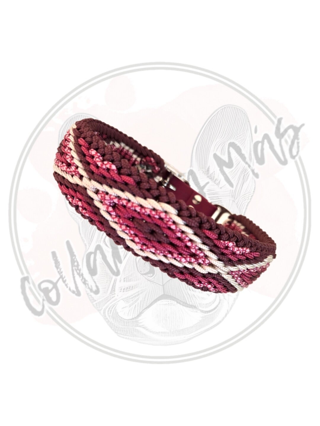 Adjustable paracord dog collar - Design Diamond - Wine - W: 31mm