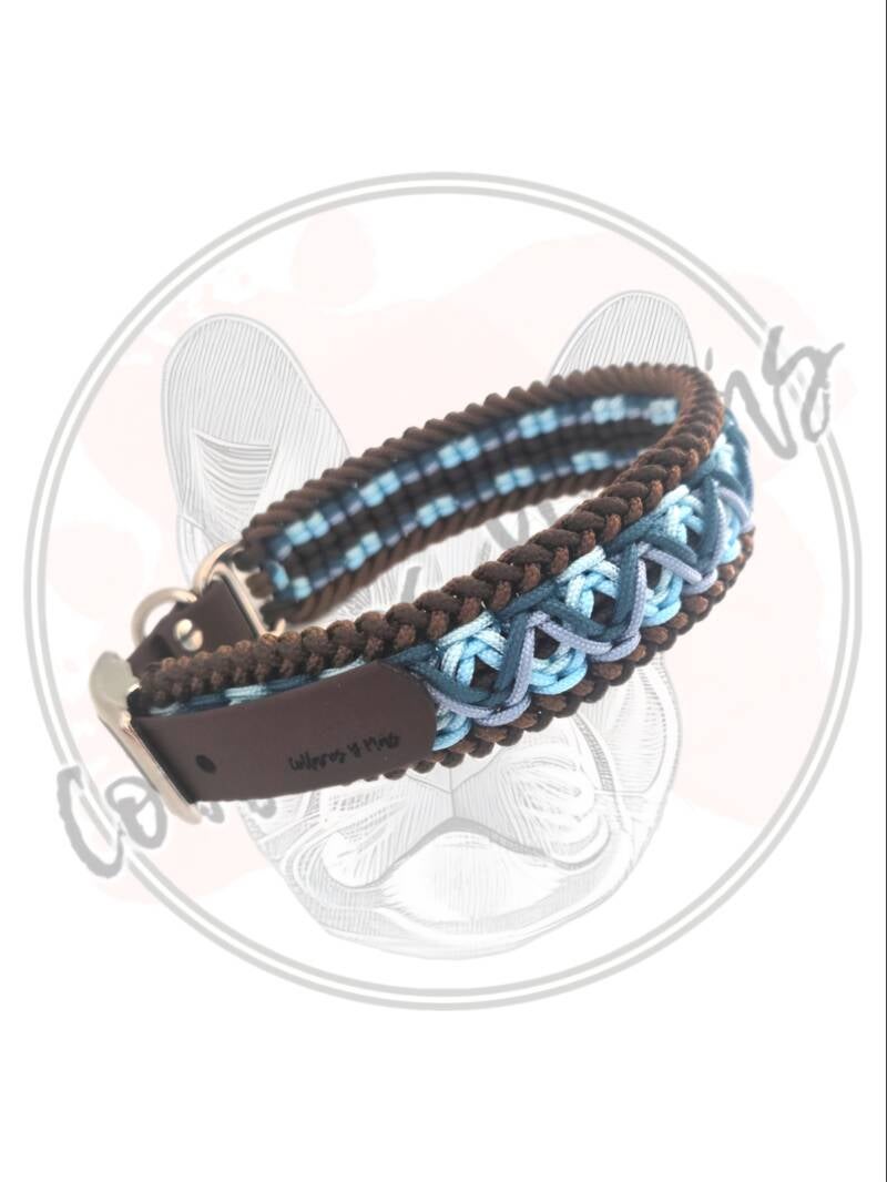 Adjustable Paracord Dog Collar - Design Hippie - Blue Brown- W: 29mm